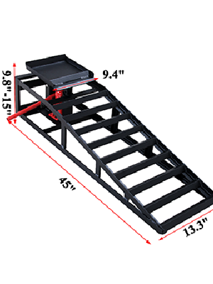 - 【Convenient Hydraulic Lift Design】 Equipped with a hydraulic cylinder, our car ramps high lift offer effortless lifting and lowering capabilities. The height of the hydraulic jack is adjustable, allowing for precise adjustments to any desired height (9.8-15 inches), ensuring versatility and ease of use.