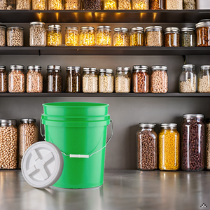 - Buckets are great for storing dry food like beans, rice, flour, sugar, salt, pasta. Honey. Pet food. Livestock feed. Birdseed.