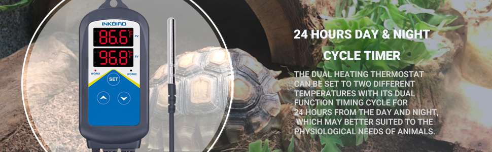 - Dual Time Cycles Setting: you can set different temperatures for day and night for animals or plants during 24 hours
