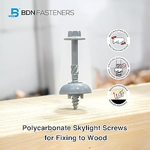 Polycarbonate Skylight Screws for Fixing to Wood - Hex Flange Head, Self-Tapping, #12×2'(12-11x50mm), 50pcs