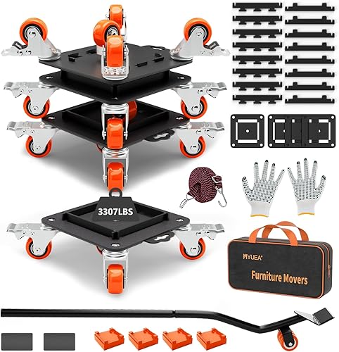 Furniture Dolly 5 Wheels Heavy Duty with Removable Side Guards,3307 Lbs Capacity,360° Rotating Wheels & Tail Brake,Furniture Movers Lifter Tool with Wheels for Appliances,Sofas,Beds,Pianos