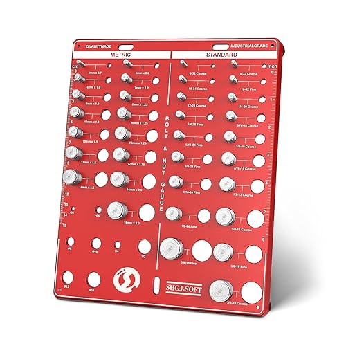 Thread Checker, 42 Nut and Bolt Identifier Gauge, Bolt Size and Thread Gauge, Thread Pitch Gauge, 19 Standard and 15 Metric Sizes Bolt Identifier Board with 8 Drill Bit Gauge (Red)