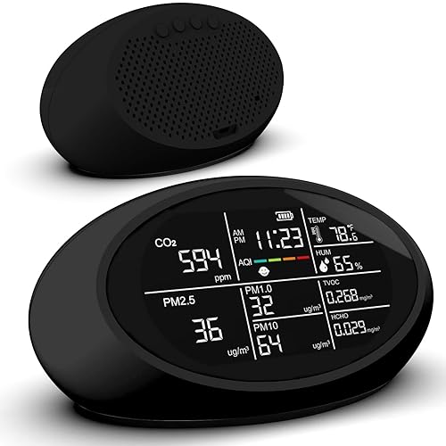 12 in 1 Air Quality Monitor Indoor- Portable Indoor Air Quality Meter for CO2, TVOC, PM2.5, PM1.0, PM10, Temperature, Humidity & Time Display, Air Quality Tester for Home 【Dual Chip & High Accuracy】