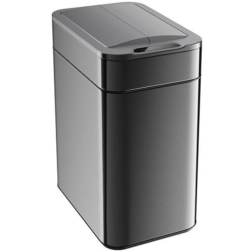 hOmeLabs - 13 Gallon Kitchen Trash Can - Retractable Automatic Sensor Butterfly Lid, Space-Saving Design, Easy to Clean, Battery-Operated with Batteries Included - Stainless Steel